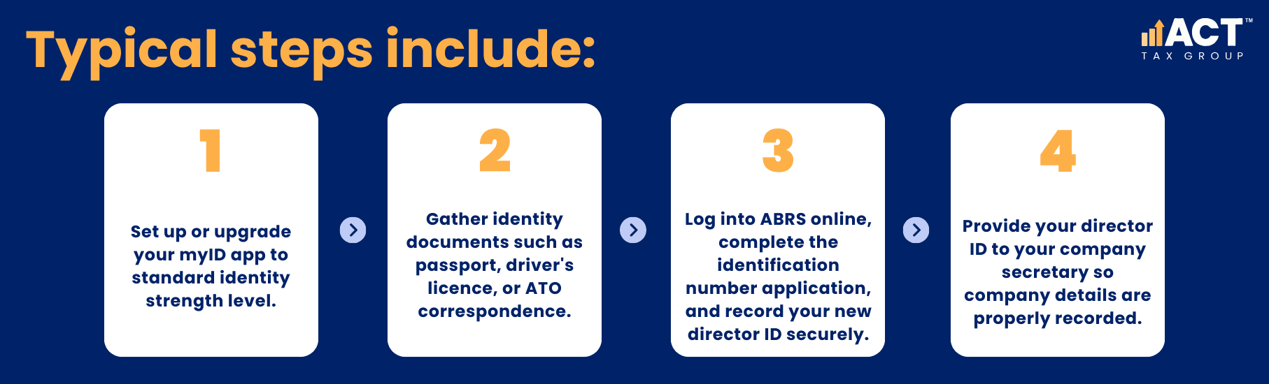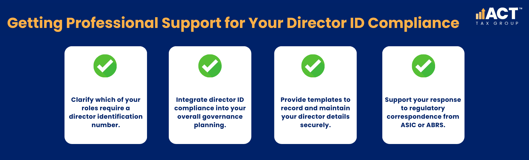 Original transitional deadlines have passed, and any person currently acting as a company director should already hold a valid identification number. If considering a new directorship, applying in advance ensures you’re ready without delays.