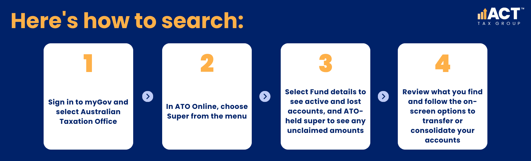 While finding lost super is often straightforward, deciding how to consolidate and manage it can be more nuanced when insurance, investment options and your broader tax and retirement goals come into play. A professional adviser can help you work through whether to keep particular insurance policies, how different funds align with your risk profile, and how your super fits into your complete financial picture. Our advisers at ACT Tax Group stress that a “set and forget” approach to super is risky, especially with frequent job changes and changing rules. Regular professional review, even just once a year, gives you a structured process to stay on top of your super rather than relying on ad-hoc checks when you happen to remember.