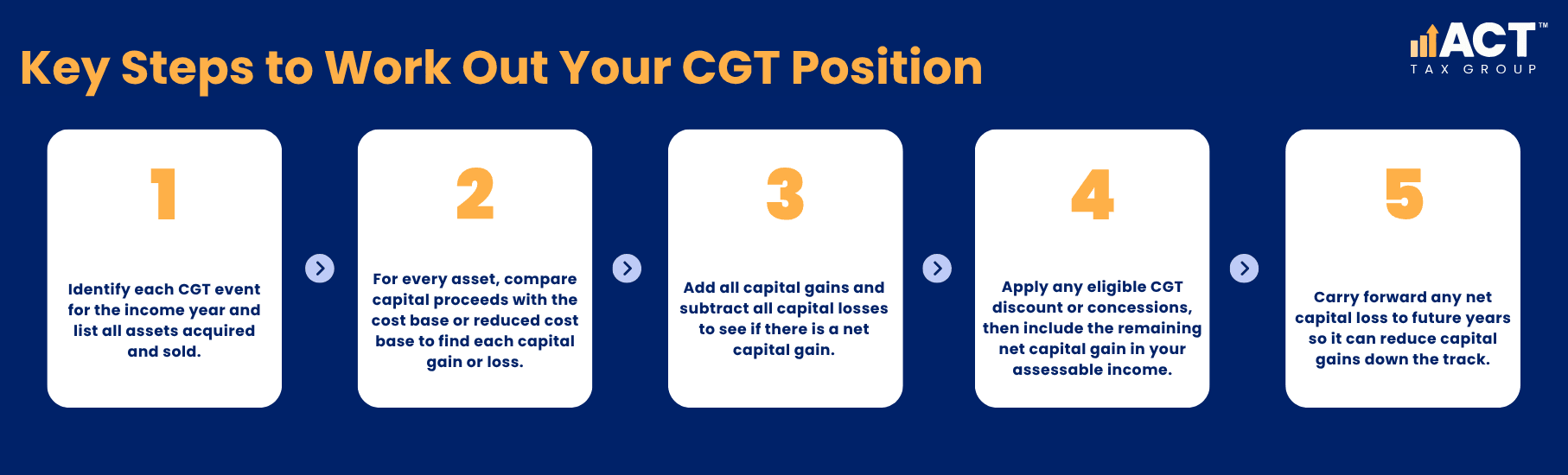 When you sit down with your accountant at the end of the financial year to review your overall tax return position, they do not simply plug numbers into a capital gains tax calculator and call it a day. They follow a series of steps, so your tax obligations are handled correctly.