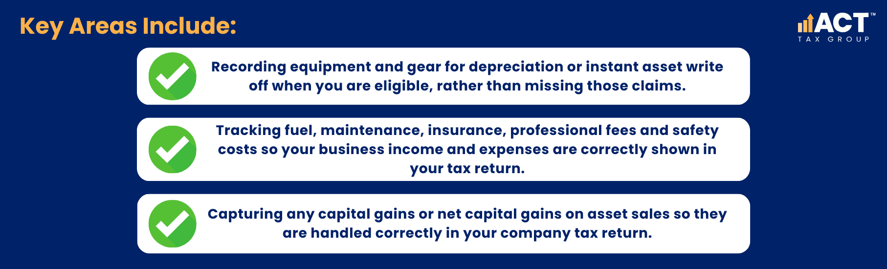 For the 2025–26 income year, instant asset write off rules and thresholds can shift, often based on your aggregated annual turnover and whether you use simplified depreciation. You still need to check whether your company is an eligible business before relying on these concessions. This is where getting help from someone who understands both the rules and your day-to-day work becomes important.