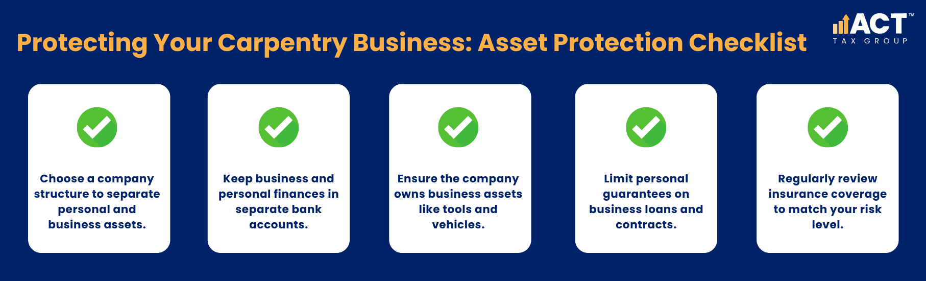 The choice between a sole trader structure and a company structure isn’t something you need to stress about forever. Most carpentry businesses naturally move to a company once the numbers and risks justify the extra complexity. Talk to an accountant who understands construction, who knows about retentions, progress claims, and the kind of payroll and compliance issues that carpenters actually face. They can run your specific numbers and help you decide whether now is the right time to shift, or whether staying as a sole trader still makes sense for your situation. The decision often comes down to three things: how much profit you’re retaining in the business, how much personal liability you’re comfortable carrying, and how much you want to protect your family home and personal assets from business risk.
