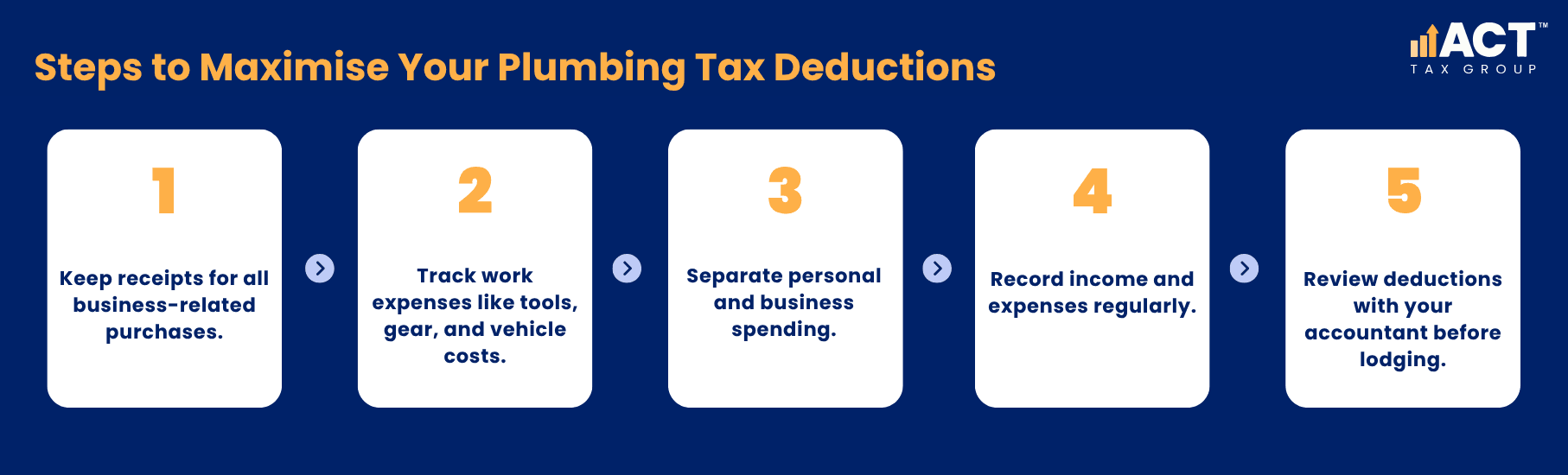 To reduce the amount of tax you pay, it’s essential to claim eligible expenses as tax deductions. For plumbers, this can include tools, equipment, safety gear, work vehicle expenses, and any work-related payments as shown on your records.